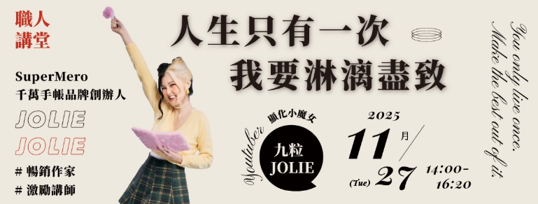 活動地點:高雄市前金區五福三路21號8樓-青年職涯發展中心 活動主持人:YouTuber / 九粒(Jolie) 報名連結:https://ys.wda.gov.tw/activities/application/activitySingUp/dcaca9f6-9337-4521-8c95-05a9665f6f69