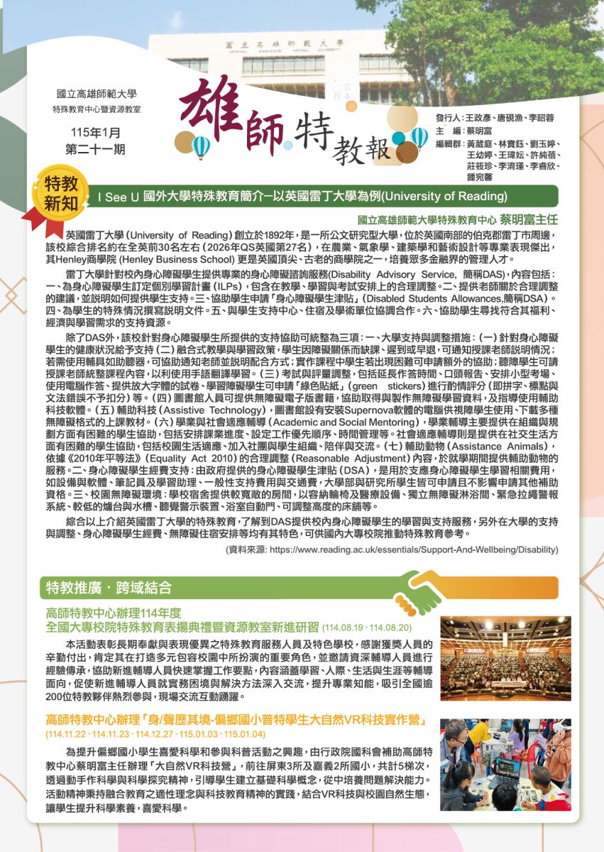 國立高雄師範大學特殊教育中心暨資源教室雄師特教報-第20期