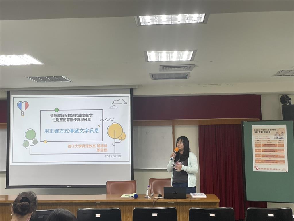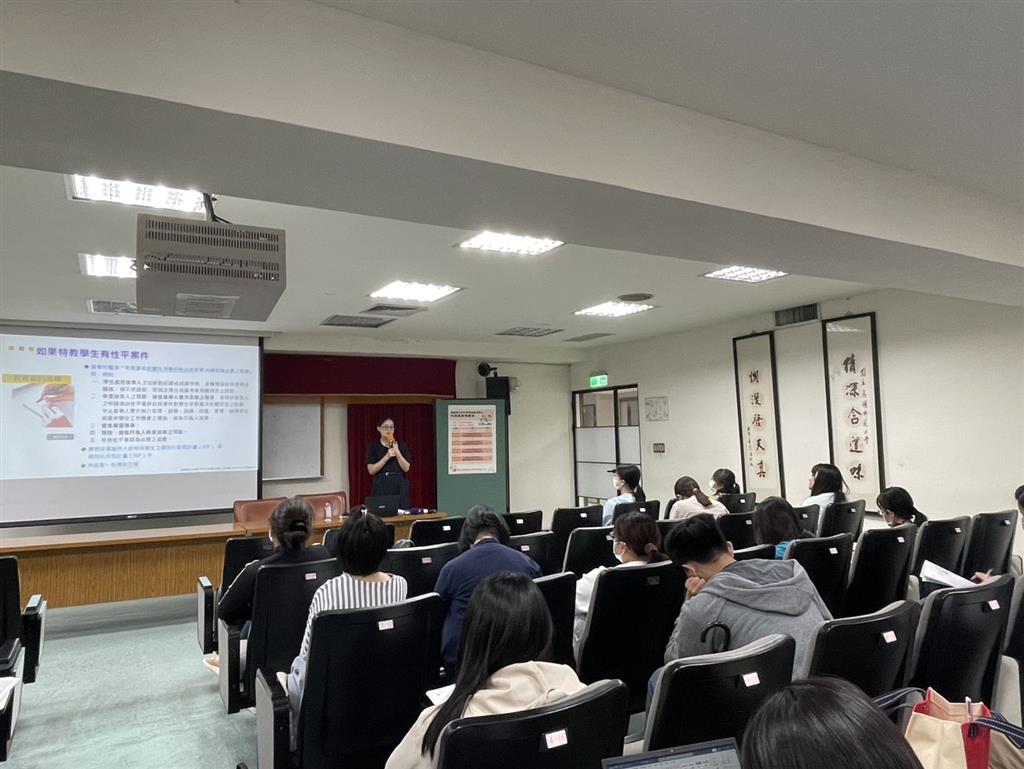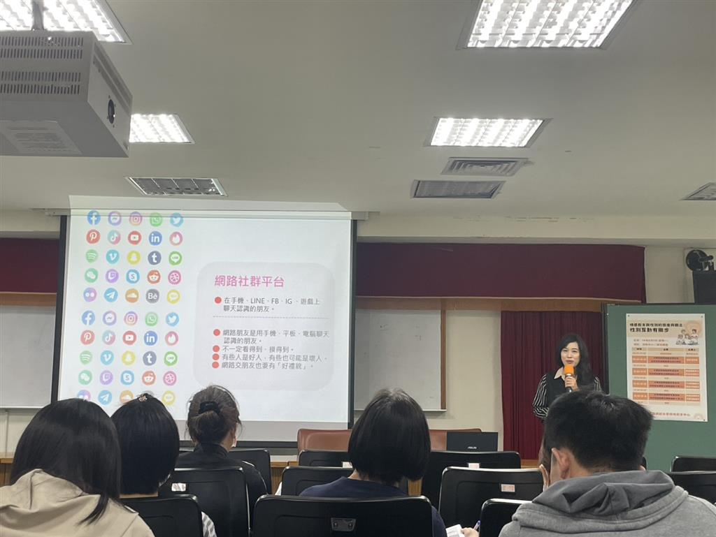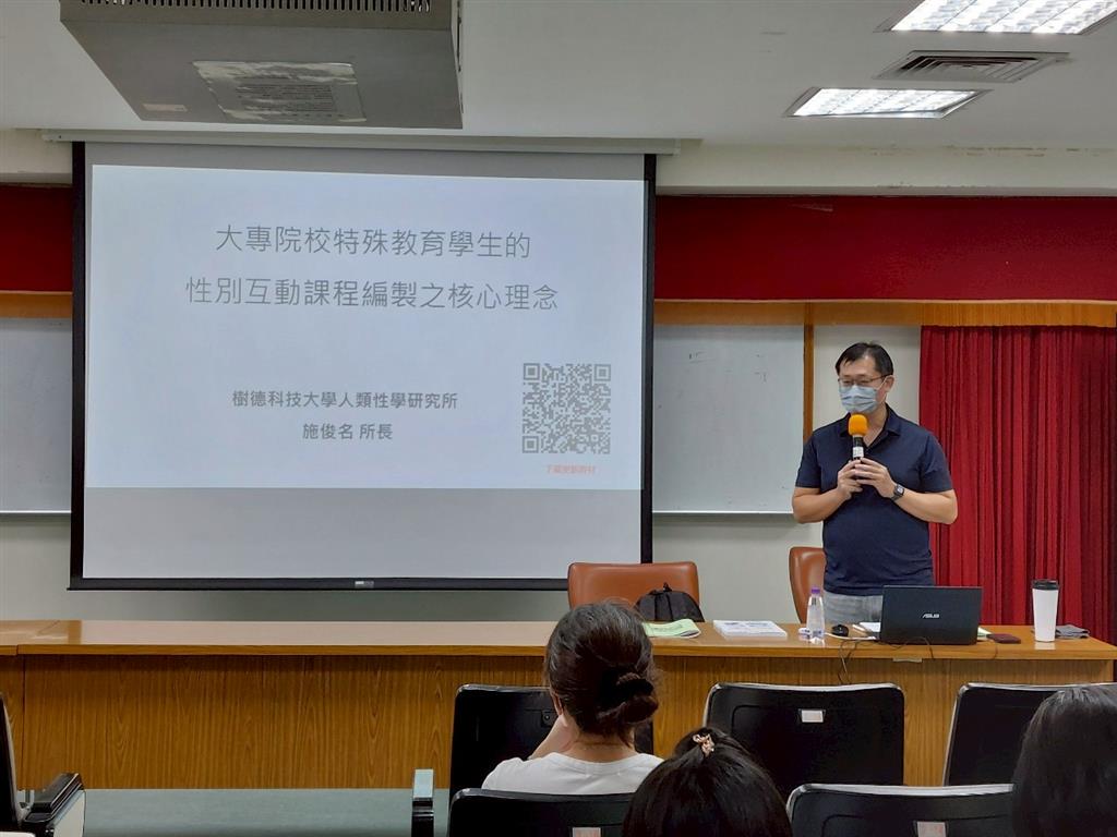 第一堂課由施俊名所長說明大專校院特殊教育學生性別互動課程編制的核心理念,首先邀請大家反思自身的性觀念。他指出,多數人的性觀念主要源自家庭背景,並深刻影響與他人互動的方式與人際關係。學術上,性觀念可分為兩種立場:「性的悲觀主義」與「性的樂觀主義」。前者認為理性應高於慾望,需透過制度與道德規範來加以控制,並將性慾視為衝動且危險的;後者則認為追求性愉悅本身具有價值,但須建立在尊重雙方自主意願、不傷害他人的前提下。此觀點亦認為,性可以促進人際關係的發展,應在對等的情境中發生,而「性的樂觀主義」便是支持「全面性教育(CSE)」的理論基礎。接著,所長列舉目前大專校院學生常見的性議題,隨後進一步說明全面性教育對特殊教育的影響。目前大專校院特教學生在性別議題上的處境,包括融合教育機會不足、性教育準備不全,以及人際互動經驗缺乏等。課程最後施所長強調:特教學生同樣擁有愛與被愛的權利,我們應共同營造一個尊重多元、促進理解與支持身體自主的學習環境。