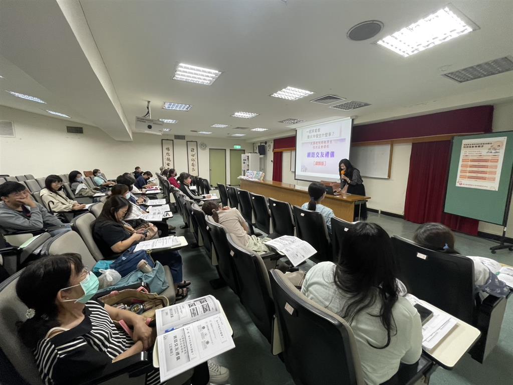 第四堂課黃葳庭輔導員分享「愛情診療室-愛情溝通探索團體」課程帶領經驗(以五專生為例),選用課程為「用正確的行為來結交朋友」,因為參與學生較多課程有進行微調,原本規劃學生實際演練變成運用學習單讓學生思考,並增加一些線上測驗。黃輔導員表示活動進行時歡迎學生使用手機,也可以利用影片來進行教學史課程比較不無聊,課程進行時也會比較活潑。當上課人數不適合進行演練時,可以善用學習單,讓學生表達出對於結交朋友的想法,書寫學習單時有時間可以讓學生沉澱結交朋友的方式。接著由洪瑛涓輔導員分享輔導經驗,以「與人對話時不碰觸對方」課程為例,教案的發想步驟一:思,反思對話時觸碰他人的行為,對他人方產生的感受及自己的行為後果;步驟二:想,想一下對話時保持適當行為的可行策略;步驟三:起,實際練習、進行適當的行動方式。洪輔導員表示實際演練,引起動機時,可以詢問學生為什麼會參加這個課程?對這個課程有什麼想法?這個課程讓你想到甚麼?等,讓課程可以更好的延伸課程,解決學生的問題。在實際演練後邀請學生分享演練時的感受,可以從動機分享處連結演練經驗,老師給予回饋及修正。