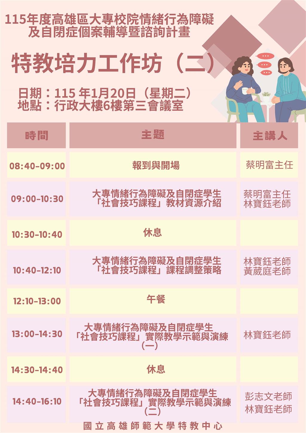 二、地點:國立高雄師範大學(和平校區)行政大樓六樓第三會議室。