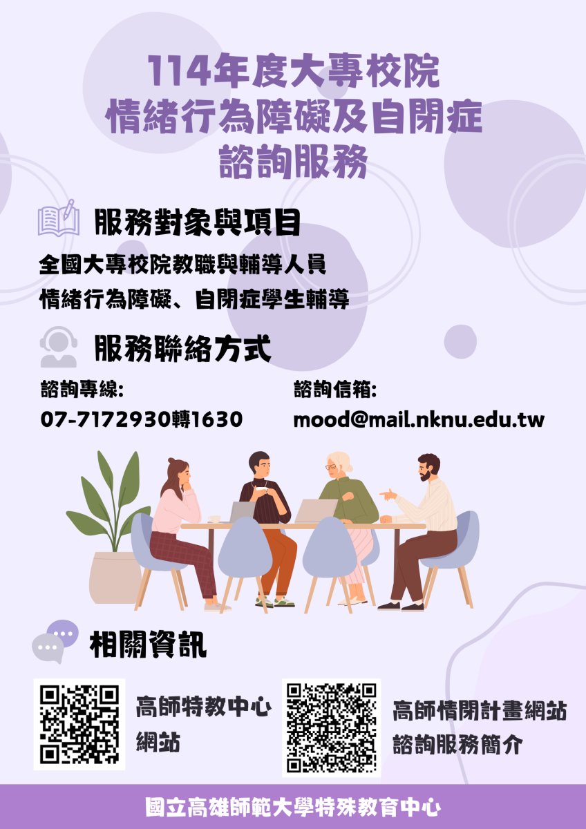114年度高雄區大專校院情緒行為障礙及自閉症個案輔導暨諮詢計畫服務