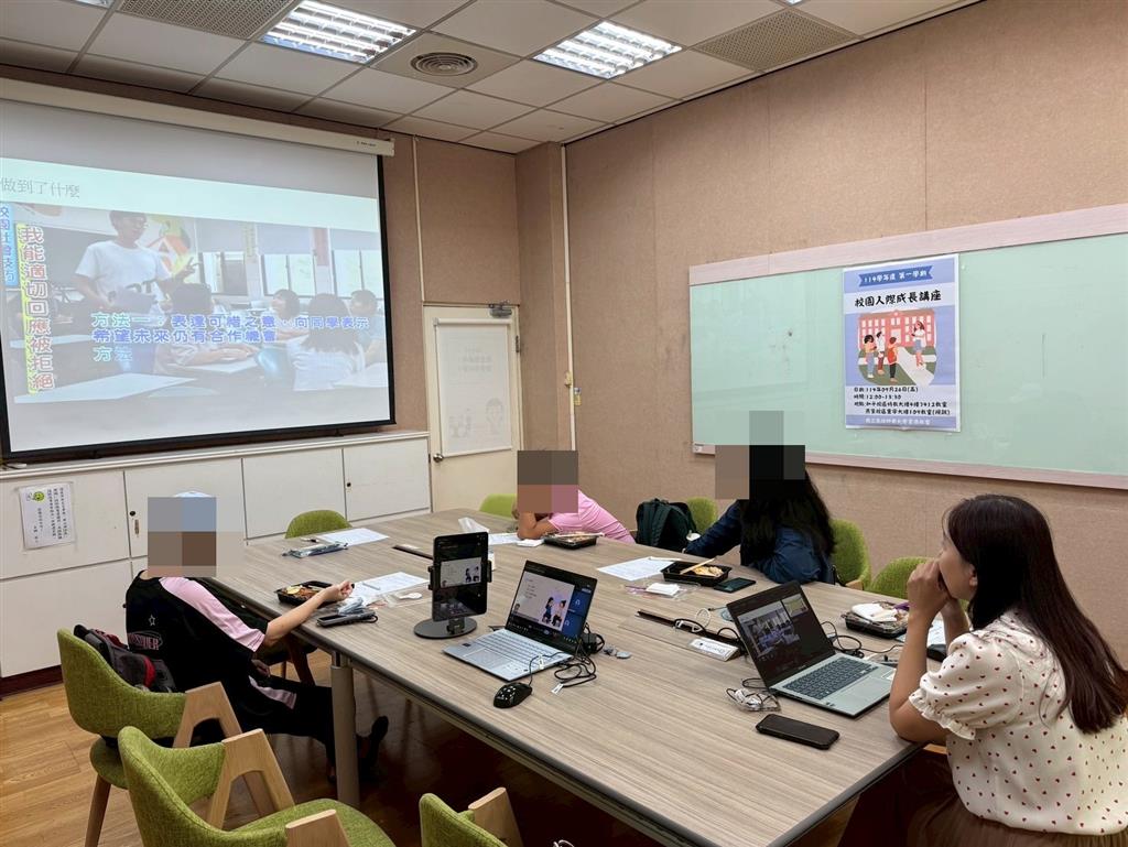 邀請在諮商所執業的諮商心理師進行校園人際成長課程,此次課程在和平校區實體進行,燕巢校區亦以視訊的方式共同連線參與。心理師先了解同學在人際互動中遇到的困難,並透過撥放高師大特教中心編製的校園社會互動技巧影片,帶同學討論哪些元素會構成好的互動,也帶同學去認識及理解在互動過程中可能產生的情緒,以及該如何使用"我訊息"進行態度和緩且訊息內容具體的表達。同學在課程中踴躍發言提問,課後回饋課程內容很有幫助。