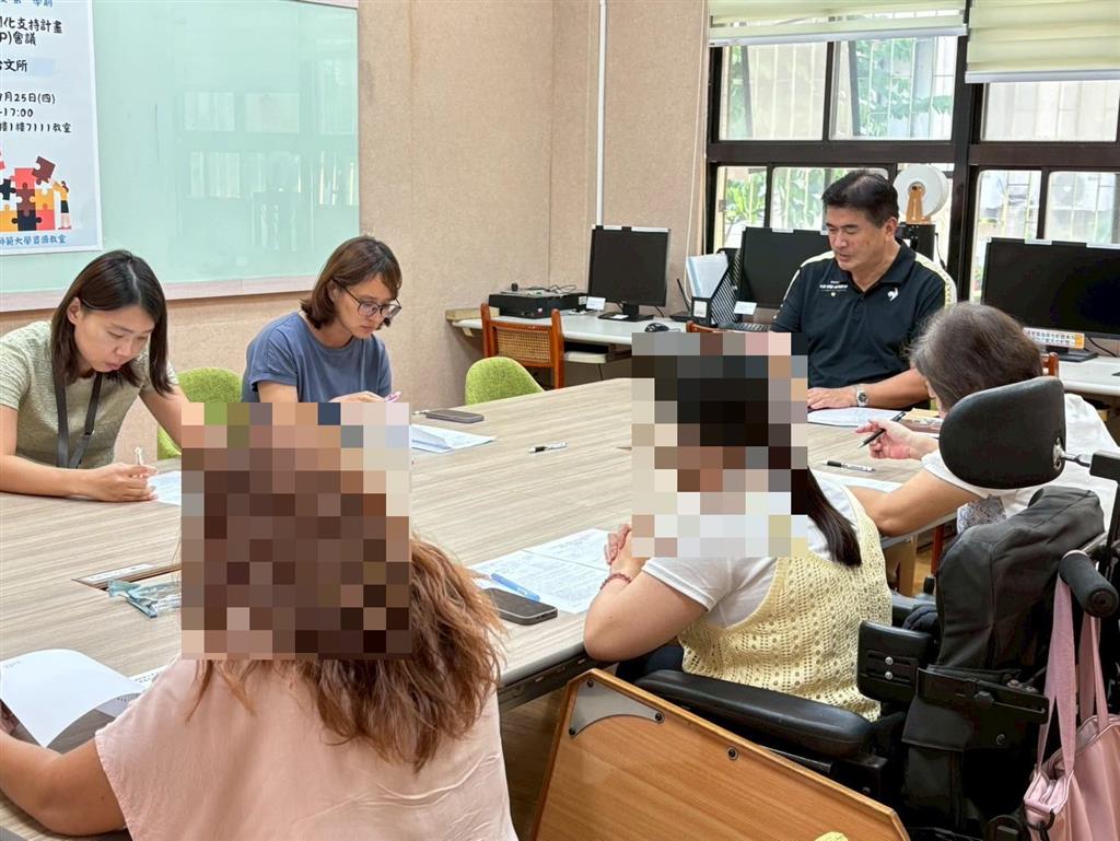 會議過程中,資源教室輔導員針對每位學生的障別特性與個別需求進行詳細說明,內容涵蓋課堂助理人員安排、任課通知信發送、學習規劃及相關支持服務。家長也積極參與討論,分享學生在生活與學習上的觀察與需求,與會師長亦說明學生在班級中的學習情形,藉此建立完整的資訊交流平台,確保跨單位協作順暢,促進學生在學習、生活及未來職涯上的整體發展。