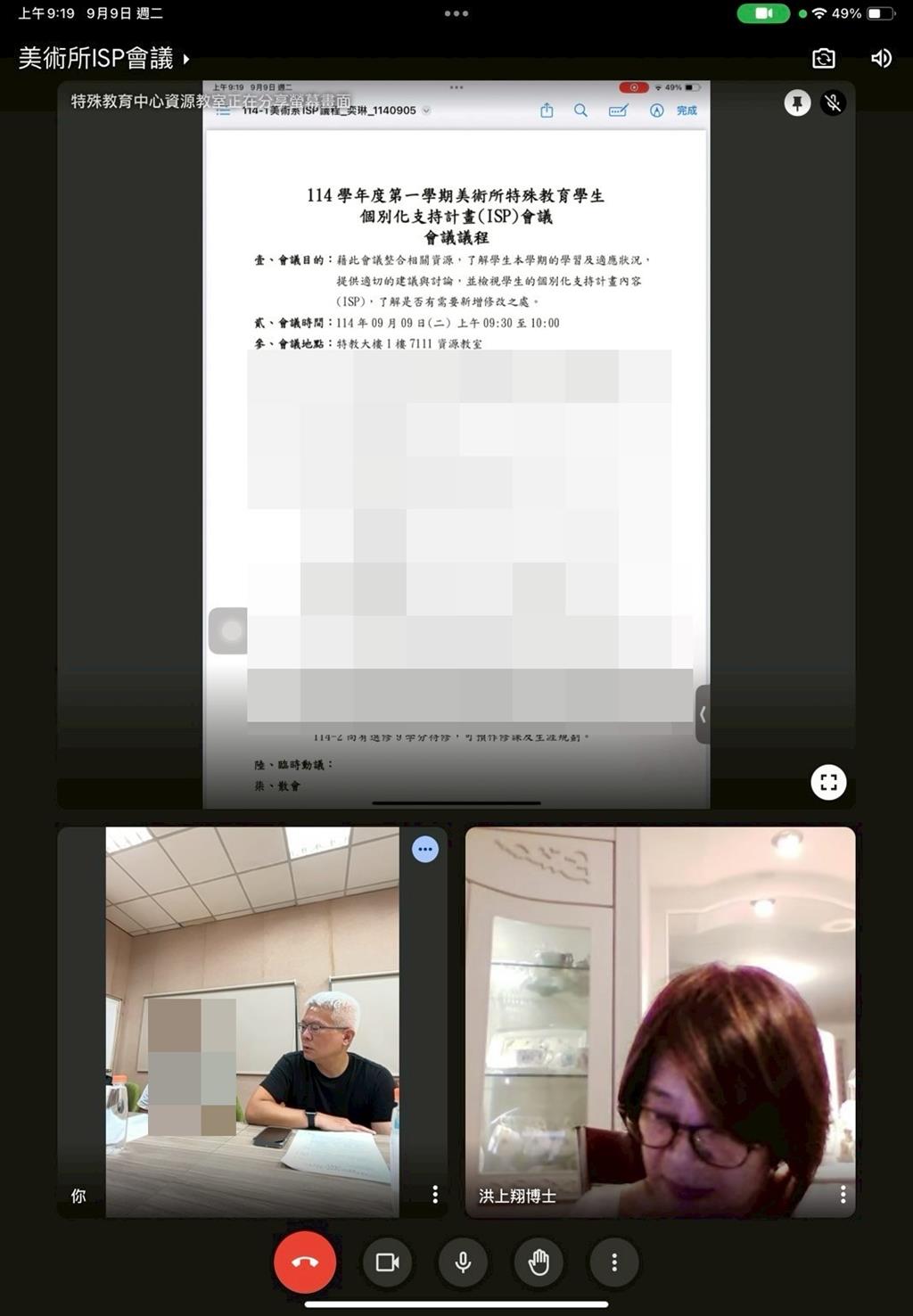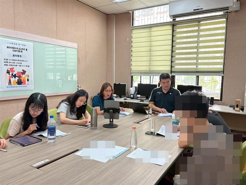 為協助美術學系的特教學生114學年在學校的身心適應及學習支持能在開學前就緒,特教中心蔡主任邀請系主任、導師、任課老師、教務處、生輔組、學輔中心及資源教室輔導員、學生、家長共同與會,決議在全校各單位的正向行為支持分工及學生、家長合力努力下,持續協助學生在校的身心適應,另在學習支持上,系所考量學生的人際限制及美術專才,亦提供畢業門檻的支持調整。
