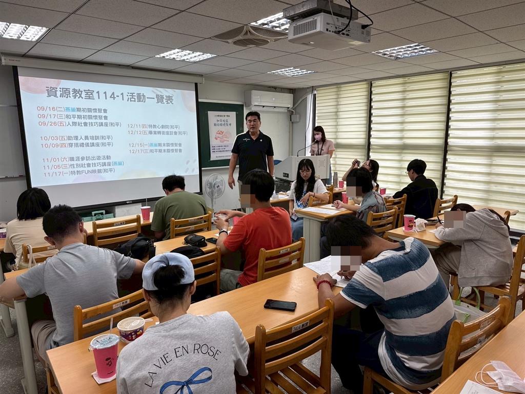 資源教室於和平校區辦理期初聚會,邀請學生於中午時間一起聚會,關心學生選課、學習及生活適應情況,並請學生填寫相關量表,讓輔導員可以更了解學生的整體身心適應情況。