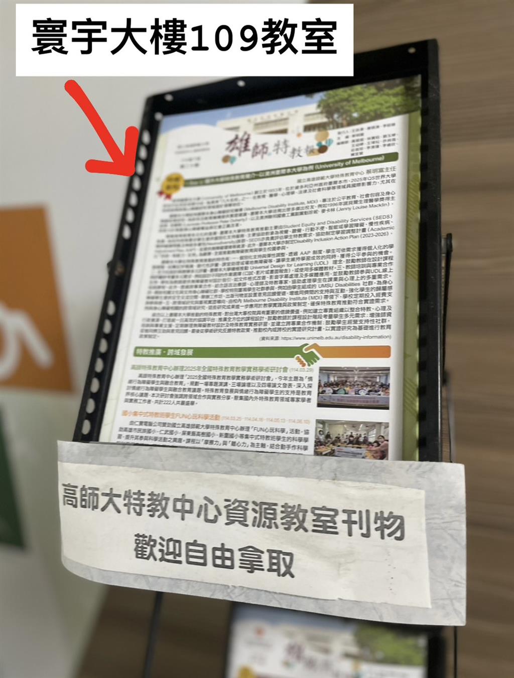 本期特教報為大家介紹澳洲墨爾本大學針對校內特殊教育學生,提供完善的支持服務,包含制定學習調整計畫、多元評量、無障礙教材設計、以及身心障礙學生社群等資訊。也分享高師資源教室在114年上半年的活動成果,包含兩校區的特教宣導月、特教FUN映館、職涯講座、人際促進活動,還有資教活動與特教中心辦理各項研習成果與花絮,供大家彼此交流分享。