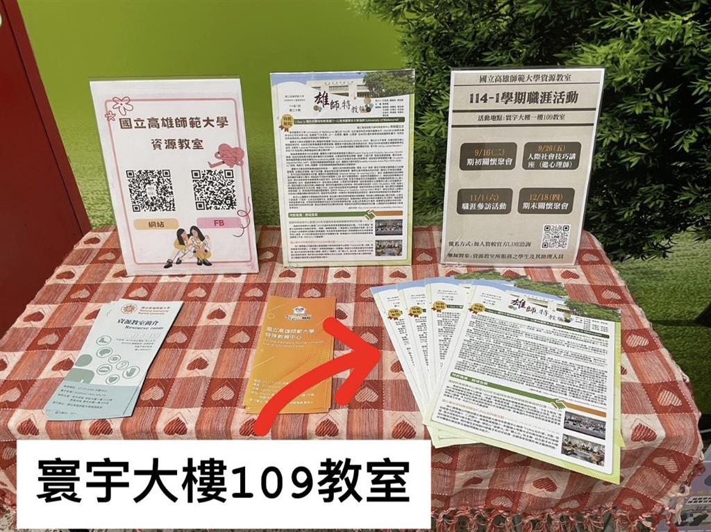 特殊教育中心暨資源教室受邀參與18級新生定向共識營,由9月1日至9月2日,分別至和平及燕巢校區進行宣導,讓高師新生認識校園內對身心障礙學生的支持服務,進而提升對多元學習需求的理解與包容,營造更友善、共融的校園環境。