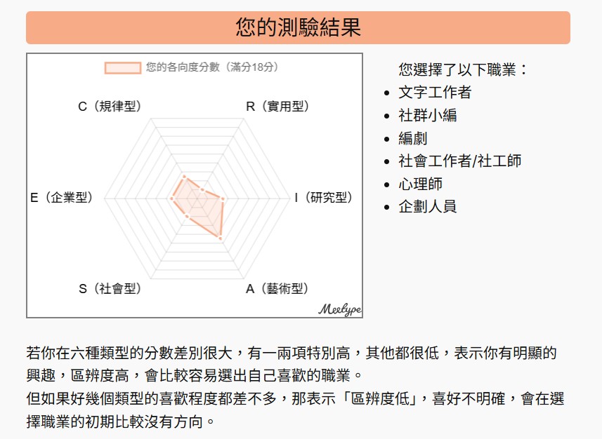 【職涯測驗資源】Meetype職業興趣測驗(Holland)