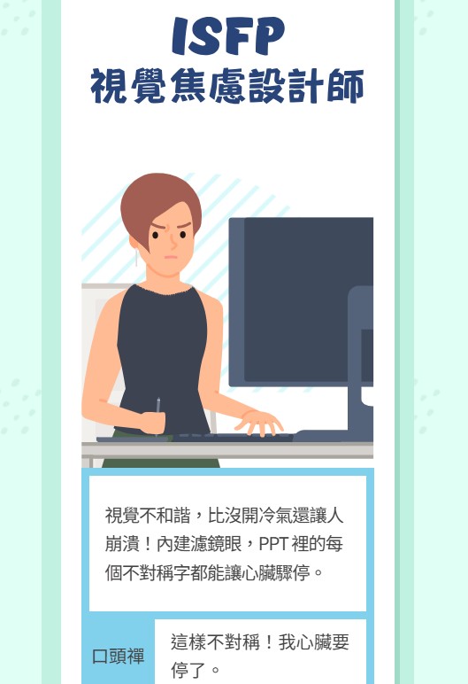 MBTI透過四大向度將人們分成16種人格類型,而MBTI職場圖鑑則更聚焦在工作行為、決策方式與團隊互動模式: